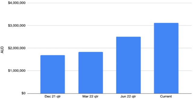 The figure represents a 78% increase on the start of the calendar year when revenue sat at $1.68 million.