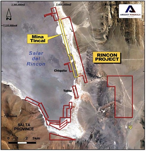 The Mina Tincal tenement comprises 196 hectares and adjoins the northern region of Argosy’s flagship Rincon lithium brine project, which is under development.