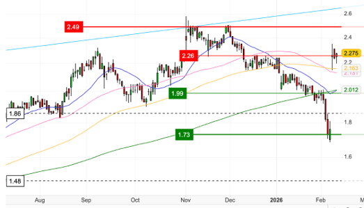 Technically, the move has been emphatic. The shares have cleared both medium and long-term moving averages and are consolidating in a $2.20 to $2.30 range, with support now forming around $2.15. Momentum indicators are elevated but not extreme. From here, the valuation anchor increasingly centres on the mooted $2.60 proposal, implying roughly 15% event-driven upside should discussions translate into a formal transaction.