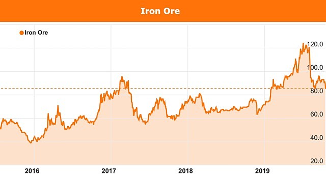 This year has been a strong year for iron ore, with its price peaking at the start of July at US$124.50 per tonne (A$181.40/t) after a fatal tailings dam disaster at Vale’s Corrego do Feijao iron ore mine in Brazil resulted in production outages leading to a global supply shortage.