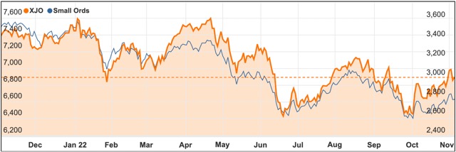 The Small Ords index rose 1.87% to 2783.9 points by close of trade Friday.
