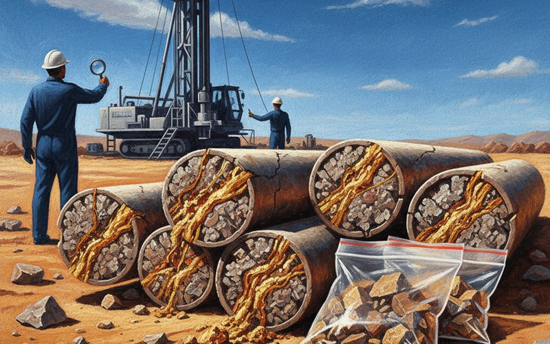 Three of the holes were extended with diamond core tails to test the target and provide samples for metallurgical lab work.