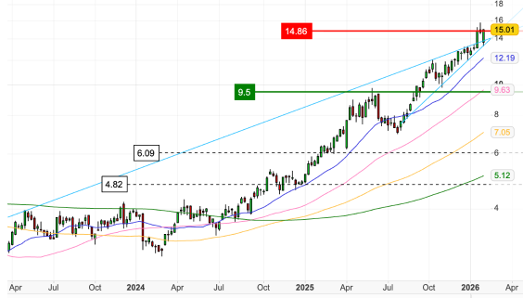 In a market where silver continues to outperform many commodities, Silver Mines offers high-torque exposure to both industrial demand and silver’s role as a monetary safe haven. From a technical perspective, the stock trades like an option - exhibiting elevated volatility and sensitivity to project-specific news - and is currently consolidating within a long-term accumulation zone.