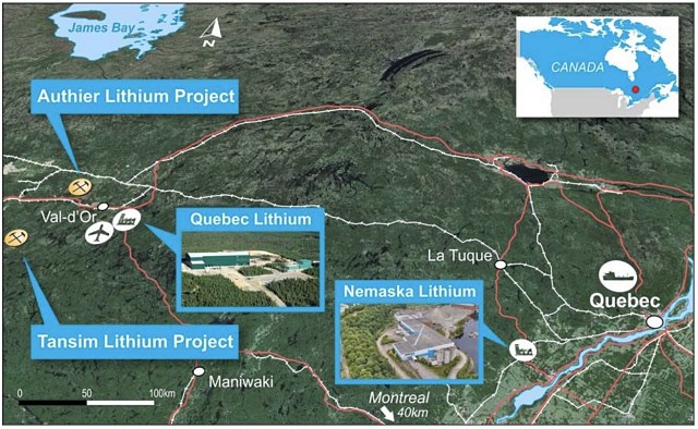 Tansim is considered as a high-grade prospect situated 82 kilometres south-west of Sayona’s existing (and flagship) Authier Lithium Project.