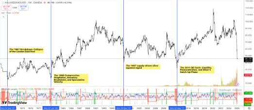 Source: Tradingview, Gold-to-Silver Ratio vs US Monetary Regimes (2026) [2]