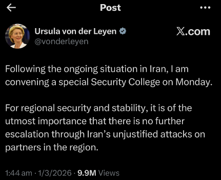 Ursula fired off a tweet that basically said, “We’re not monitoring the situation but we will later,” which is Brussels‑speak for: someone sent some texts around about extra pastries needed for the 10am huddle.