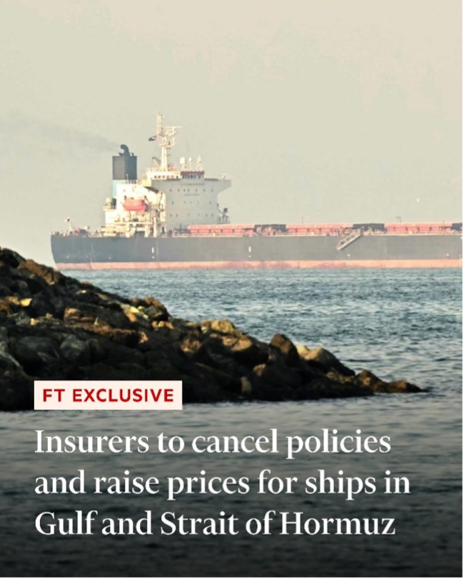 War risk insurers are pulling policies for ships travelling through Hormuz.