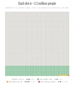 Six‑plus billion people haven’t touched AI at all. The monetised user base is a rounding error. The coding‑scaffold crowd is a microscopic sliver.