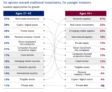 Younger investors are leaning into real assets, crypto, private equity, and building their own brands.
