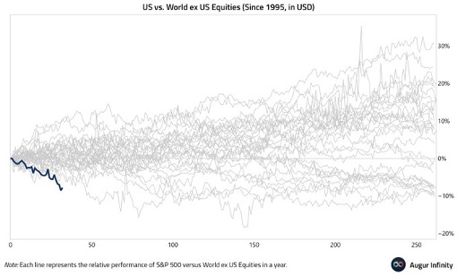 Going back to 1995 the US had NEVER performed worse compared to international stocks.