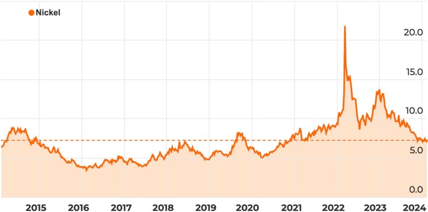 “The international nickel price is forecast to stay relatively low through 2024 and likely for several years to come until the surplus of nickel in the market is corrected.”